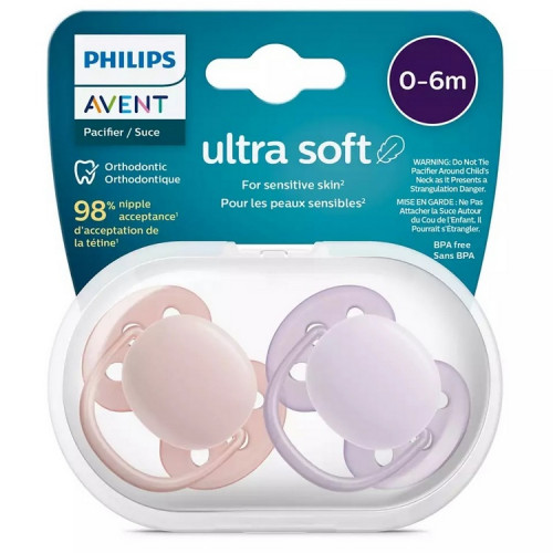 Cumlík Avent Ultra Soft 0-6m 2ks/Ružový&fialový Cumlík Avent Ultra Soft 0-6m 2ks/Ružový&fialový