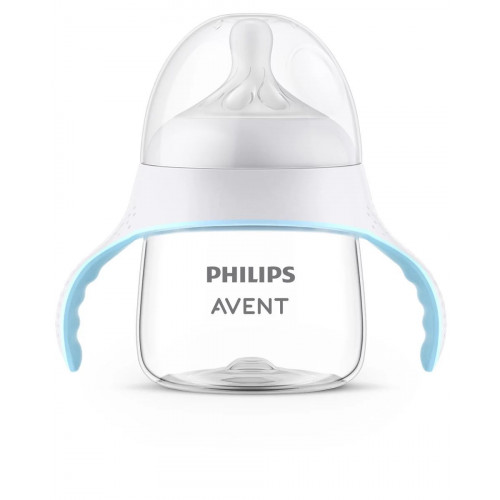 Fľaštička na učenie Natural Response naučí Vaše dieťatko piť z hrnčeka. Pohodlné držadlá pomáhajú dieťatku samostatne držať fľaštičku, zatiaľ čo pije zo známeho cumlíka. Mäkké držadlá s protišmykovou vrstvou sú tvarované pre ľahké uchopenie malými ručičkami. Prisatie je prirodzené vďaka cumlíku v tvare prsníka. Unikátny tvar cumlíka uvoľňuje mlieko len vtedy, keď dieťatko aktívne pije. Keď teda pitie preruší, aby prehltlo a nadýchlo sa, tok mlieka sa preruší tiež. Cumlík Natural Response funguje v súlade s prirodzeným rytmom kŕmenia dieťatka, takže je možné ľahko kombinovať dojčenie a kŕmenie z fľaše. Široký, mäkký a pružný cumlík je navrhnutý tak, aby napodobňoval tvar aj povrch prsníka a pomáhal tak dieťatku pohodlne sa prisať. Antikolikový ventil zabraňuje, aby počas kŕmenia vnikal do bruška dieťatka vzduch a zníži sa tak riziko koliky a bolesti. Fľaše Philips Avent Natural sú vyrobené z materiálu neobsahujúceho BPA.