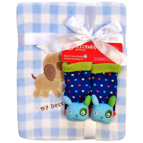 Detská deka z mikrovlákna Bobo Baby s veľkým našitým obrázkom a motívom roztomilých bodiek. Teraz naviac s kojeneckými ponožtičkami. Kvalitný materiál, ktorý nepúšťa farbu a nevyvoláva alergické reakcie. Rozmery deky cca 76x102 cm. Zloženie 100% polyester. Ponožky sú vhodné pre deti od 3-6 m. Zloženie - 85% bavlna, 10% polyamid, 5% elastan.