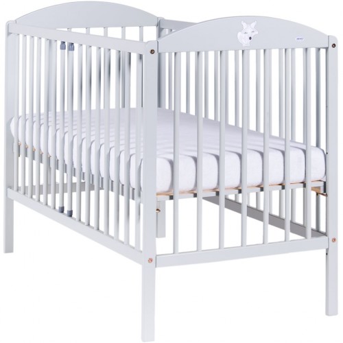 Detská postieľka Drewex Lišiak z borovicového dreva s klasickým oblúkovým dizajnom a obrázkom lišiačika, ideálna pre bábätká. Postieľka má dve vyberateľné priečky a má regulovateľný rošt, ktorý možno nastaviť do troch polôh.