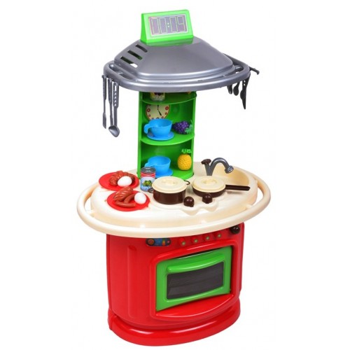 Detská kuchynka Bayo pre všetky malé detičky. Hračka je vhodná pre deti vo veku od cca 3 rokov. Materiál - plast. Súčasti kuchynky: - 1 x hrniec s pokrievkou, - 1 x panvica s pokrievkou, - 2 x tanier, - 2 x hrnček s tanierikom, - 2 x lyžička, - 2 x nôž, - 2 x vidlička, - 1 x obracačka, - 1 x veľká lyžica, - 1 x veľká vidlička, - 2 x rožky, párky, vajíčka, konzervy, - 1 x banán, hrozno, ananás Rozmery - VxŠxH cca 100x62x44cm