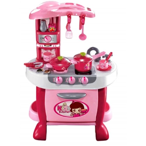 Veľká detská kuchynka s dotykovým senzorom, Bayo Krásna veľká detská kuchynka s trúbou Bayo. S touto kuchynkou si budú môcť Vaše dievčatá hrať na ozajstné gazdinky. - vyrobená z kvalitného plastového materiálu - napájanie 3x 1,5V batériami typu AA (nie sú súčasťou balenia) - určená pre deti od 3 rokov Kuchynka obsahuje:: - 1 rúru, ktorá sa otvára - 1 kávovar - 2 horáky, ktoré svietia a vydávajú zvuky, otočné gombíky - 1 dres s vodovodnou batériou - 1 digestor s háčikmi na zavesenie príslušenstva - 2 poličky na boku kuchynky Príslušenstvo: - 2 hrnce s pokrievkou - 1 naberačka - 2 obracačky - príbory - 1 nôž - 1 čajová lyžička - 2 hrnčeky - 1 kečup - 1 soľ - 2 taniere Materiál: plast