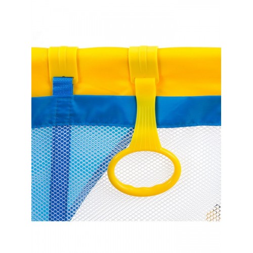 Ohrádka má jednoduché a rýchle skladanie ako u cestovnej postieľky. Je krásne farebná, má priehľadná sieťku na bočných stranách, čo umožní Vášmu dieťatku sledovať okolitý svet aj z ohrádky. Jeden bok má praktické, otváracie dvierka na zips. Ohrádka má naviac mäkký farebný matrac. Súčasťou je tiež taška na prenášanie a úschovu.