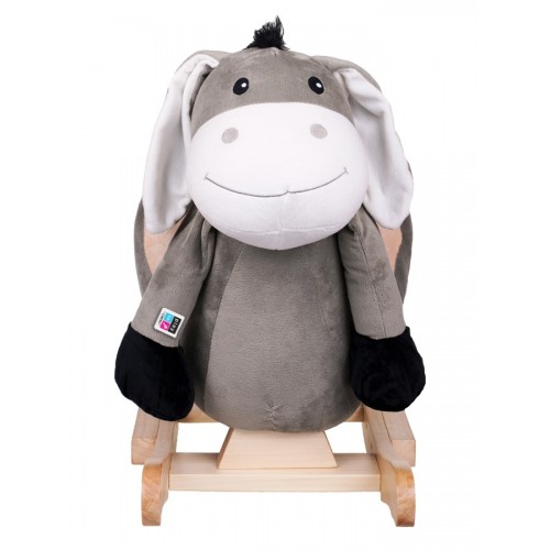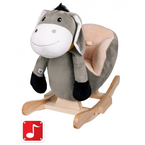 Hojdací oslík PlayTo s mnohými vychytávkami. Hračka má sedlo, drevené rukoväte a drevené stúpadlá na nohy. Oslík po stlačení labky hrá melódiu. Labky sú mäkké a pohyblivé. Sedlo je pohodlné, bezpečné a krásne tvarované. Vhodné pre deti od 18 mesiacov.
