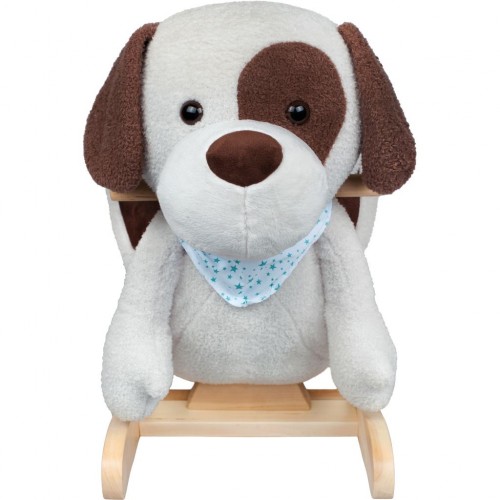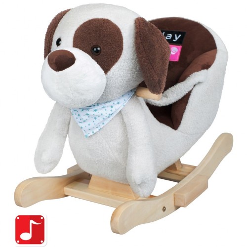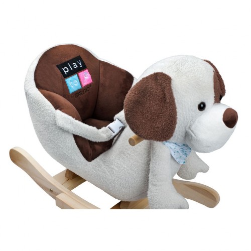 Hojdací králiček PlayTo s mnohými vychytávkami. Hračka má sedlo, drevené rukoväte a drevené stúpadlá na nohy. Psík po stlačení labky hrá melódiu. Labky sú mäkké a pohyblivé. Sedlo je pohodlné, bezpečné a krásne tvarované. Vhodné pre deti od 18 mesiacov.