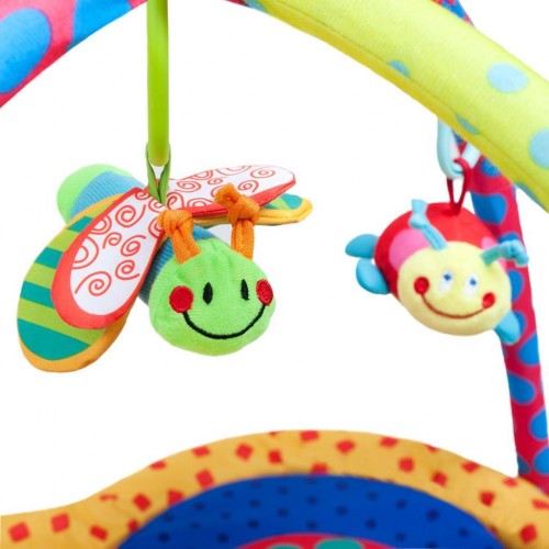 Krásna originálna vzdelávacia hracia deka PlayTo s hrazdou rozvíja detskú predstavivosť vďaka spoznávaniu farieb a tvarov. Hracia deka je v krásnej žiarivej farbe v tvare motýlika. Rozvíja zmysly hmatu, zraku aj sluchu vďaka šuštiacim a pohyblivým častiam. Príjemný a mäkký materiál umožňuje pohodlné ležanie na brušku alebo chrbte a umožňuje slobodu pohybu Vášho dieťatka. Bábätko tak môže získať bezpečný útulnejší priestor a motivuje na dvíhanie sa dieťatka. Hračky je možné z hrazdičky ľahko zložiť a použiť samostatne, prípadne zameniť za iné hračky. Vhodné pre deti od 3 mesiacov.