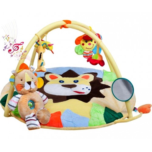 Krásna originálna vzdelávacia hracia deka s melódiou PlayTo s hrazdou rozvíja detskú predstavivosť vďaka spoznávaniu farieb a tvarov. Hracia deka je v krásnej žiarivej farbe s motívom levíčaťa. Rozvíja zmysly hmatu, zraku aj sluchu vďaka šuštiacim a pohyblivým častiam. V kvetinke je ukrytý hrací modul, ktorý po stlačení hrá melódie. Súčasťou hracej deky je aj krásna plyšová hračka, levíča. Príjemný a mäkký materiál umožňuje pohodlné ležanie na brušku alebo chrbte a umožňuje slobodu pohybu Vášho dieťatka. Bábätko tak môže získať bezpečný útulnejší priestor a motivuje na dvíhanie sa dieťatka. Hračky je možné z hrazdičky ľahko zložiť a použiť samostatne, prípadne zameniť za iné hračky. Vhodné pre deti od 3 mesiacov.