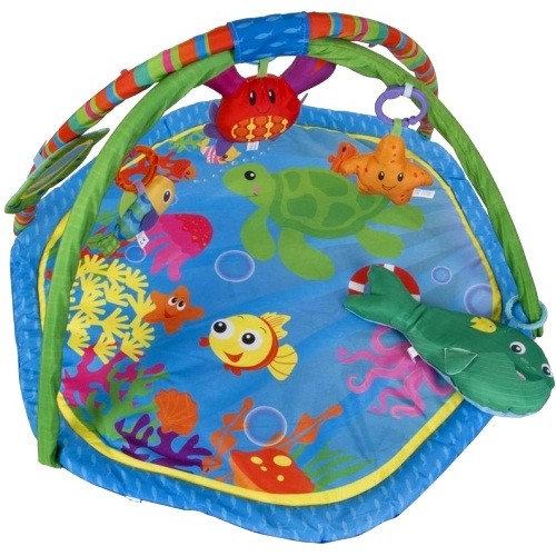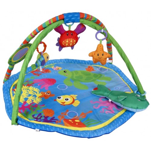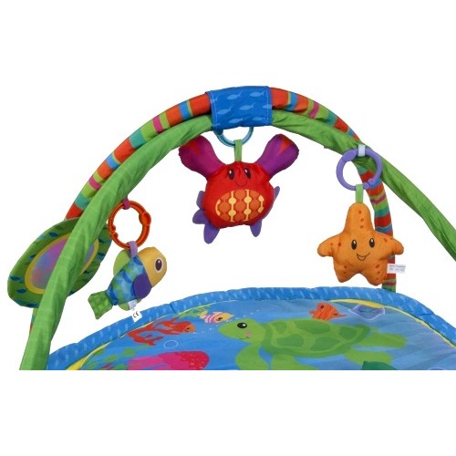Rozvojová podložka Sun Baby pomáha rozvíjať zmysly ako hmat, zrak a sluch dieťatka a súčasne aj jeho predstavivosť. Vaše dieťatko výborne zabaví. Pútavo na dieťatko pôsobia aj pekné pestré farby. Na hrázdičke sú umiestnené veselé hračky. Samotná podložka má krásne živé farby, ktoré priťahujú pozornosť dieťatka. Hračky je možné z hrazdičky odopnúť a vymeniť za iné závesné hračky, prípadne sa s nimi dieťatko môže hrať samostatne. Samotná hracia deka je z príjemného, mäkkého materiálu s velelými obrázkami zvieratiek. Pre dieťatko je bezpečná. Súčasťou je aj praktická taška na cestovanie alebo úschovu. Dečka je vhodná pre detičky vo veku od 3 mesiacov.