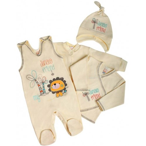 Krásna 4-dielna súpravička Bobas Fashion Friends s vyšívaným obrázkom a nápisom. Sada obsahuje košieľku, dupačky, kabátik a čiapočku.