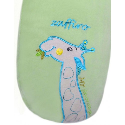 s výšivkou žirafy na prednej strane. Poťah má zapínanie na zips, možno ho zložiť a vyprať. Zloženie poťahu 80% bavlna, 20% polyester, výplň - antialergické vlákno. Dĺžka cca 170 cm, výška cca 16 cm.
